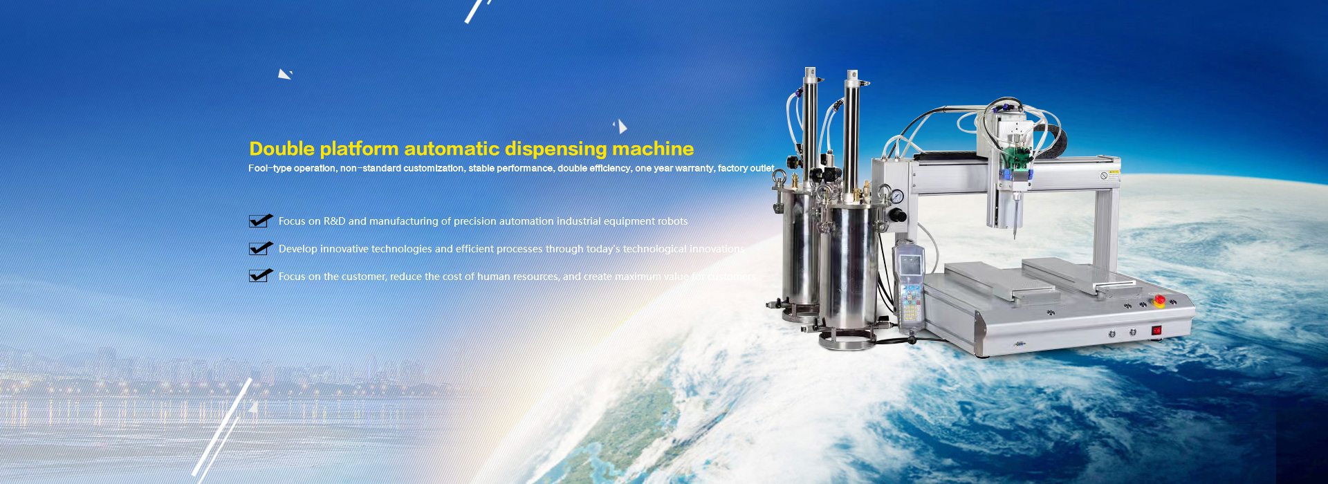 公(gong)司(si)主(zhu)营产物有:主(zhu)动(dong)锁(suo)螺(luo)丝(si)(si)机(ji)(ji)(ji)、主(zhu)动(dong)焊(han)(han)(han)(han)锡(xi)(xi)机(ji)(ji)(ji)、主(zhu)动(dong)点(dian)胶(jiao)机(ji)(ji)(ji)、主(zhu)动(dong)灌胶(jiao)机(ji)(ji)(ji)、激光焊(han)(han)(han)(han)锡(xi)(xi)机(ji)(ji)(ji)、高频无烙铁头焊(han)(han)(han)(han)锡(xi)(xi)机(ji)(ji)(ji)、基板测(ce)试机(ji)(ji)(ji)、非标(biao)装备(bei)订制等产物;专一于双头双平台焊(han)(han)(han)(han)锡(xi)(xi)机(ji)(ji)(ji)、螺(luo)丝(si)(si)机(ji)(ji)(ji)、点(dian)胶(jiao)机(ji)(ji)(ji),三(san)轴四轴焊(han)(han)(han)(han)锡(xi)(xi)机(ji)(ji)(ji)、螺(luo)丝(si)(si)机(ji)(ji)(ji)、点(dian)胶(jiao)机(ji)(ji)(ji);桌(zhuo)面式与落地式焊(han)(han)(han)(han)锡(xi)(xi)机(ji)(ji)(ji)、螺(luo)丝(si)(si)机(ji)(ji)(ji)、点(dian)胶(jiao)机(ji)(ji)(ji),转盘式与在线式焊(han)(han)(han)(han)锡(xi)(xi)机(ji)(ji)(ji)、螺(luo)丝(si)(si)机(ji)(ji)(ji)、点(dian)胶(jiao)机(ji)(ji)(ji),是焊(han)(han)(han)(han)锡(xi)(xi)、锁(suo)螺(luo)丝(si)(si)、点(dian)胶(jiao)装备(bei)全体计划带领者(zhe)(zhe)与处理者(zhe)(zhe)公(gong)司(si),许诺为(wei)泛(fan)博用户(hu)(hu)供给相干装备(bei)的毕生颐养与保护(hu),并且有天(tian)下上(shang)门售后办事。